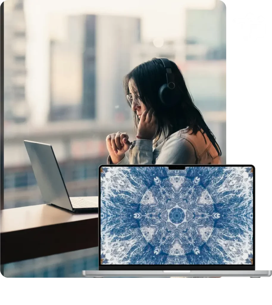 Sienta cómo disminuye su estrés a medida que patrones visuales y auditivos respaldados por la neurociencia regulan su mente y relajan su cuerpo.